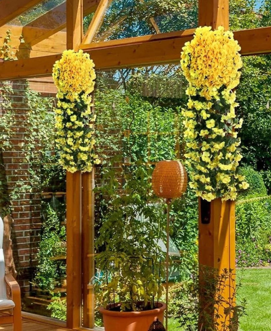 Da sie aus hochwertigem Seidenstoff gefertigt sind, bleiben diese Blumen das ganze Jahr über schön und pflegefrei.