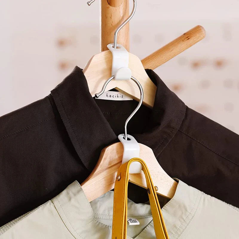 Diese Haken befestigst du an deinen normalen Kleiderbügeln, sodass du deine Kleidung vertikal stapeln kannst und in nur wenigen Minuten mehr Platz für deine Kleidung schaffst.