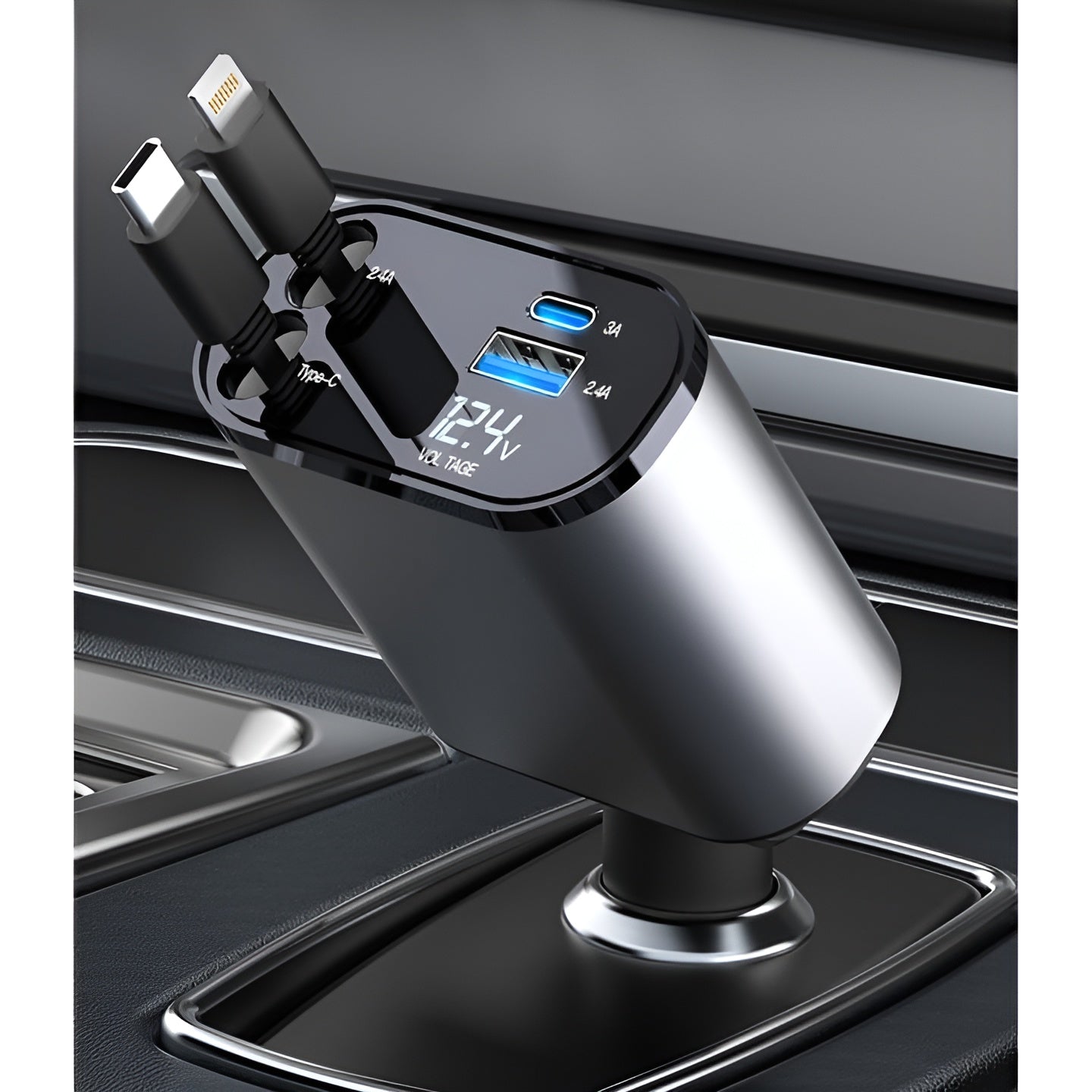 Doppelt einziehbare Ladekabel (Lightning-Adapter und USB-C): Halten Sie Ihr Fahrzeug sauber und vermeiden Sie unordentliche Kabel.