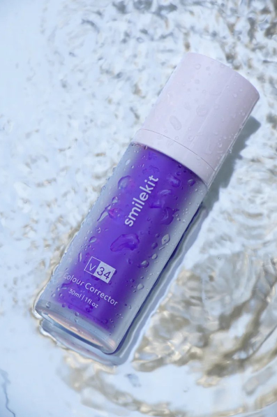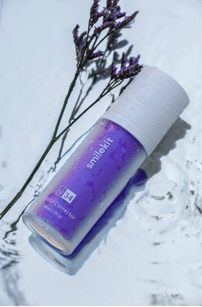 2- Lass die violette Formel ihre Arbeit tun, um gelbe Verfärbungen zu neutralisieren.