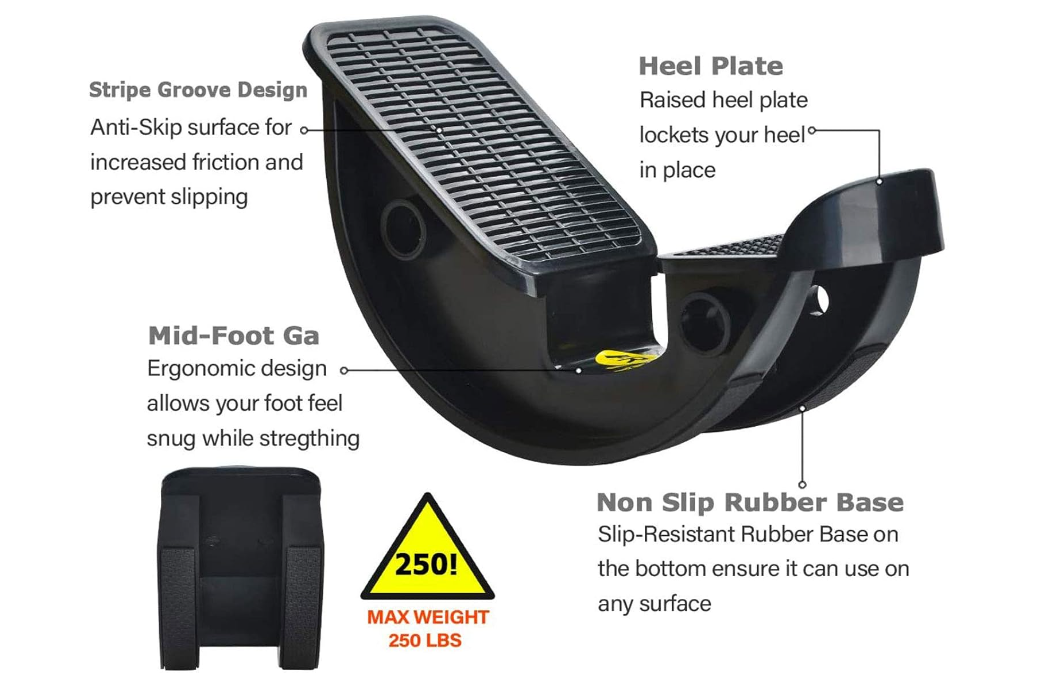 Rutschfestes Wip-Design: Rutschfeste Gummigriffe an der Unterseite des Fußwippers sorgen dafür, dass der Wipper auf jedem Untergrund nicht wegrutscht. Eine erhöhte Fersenkante hält die Ferse an ihrem Platz, um zu verhindern, dass der Fuß während der Nutzung abrutscht und um Verletzungen zu reduzieren.